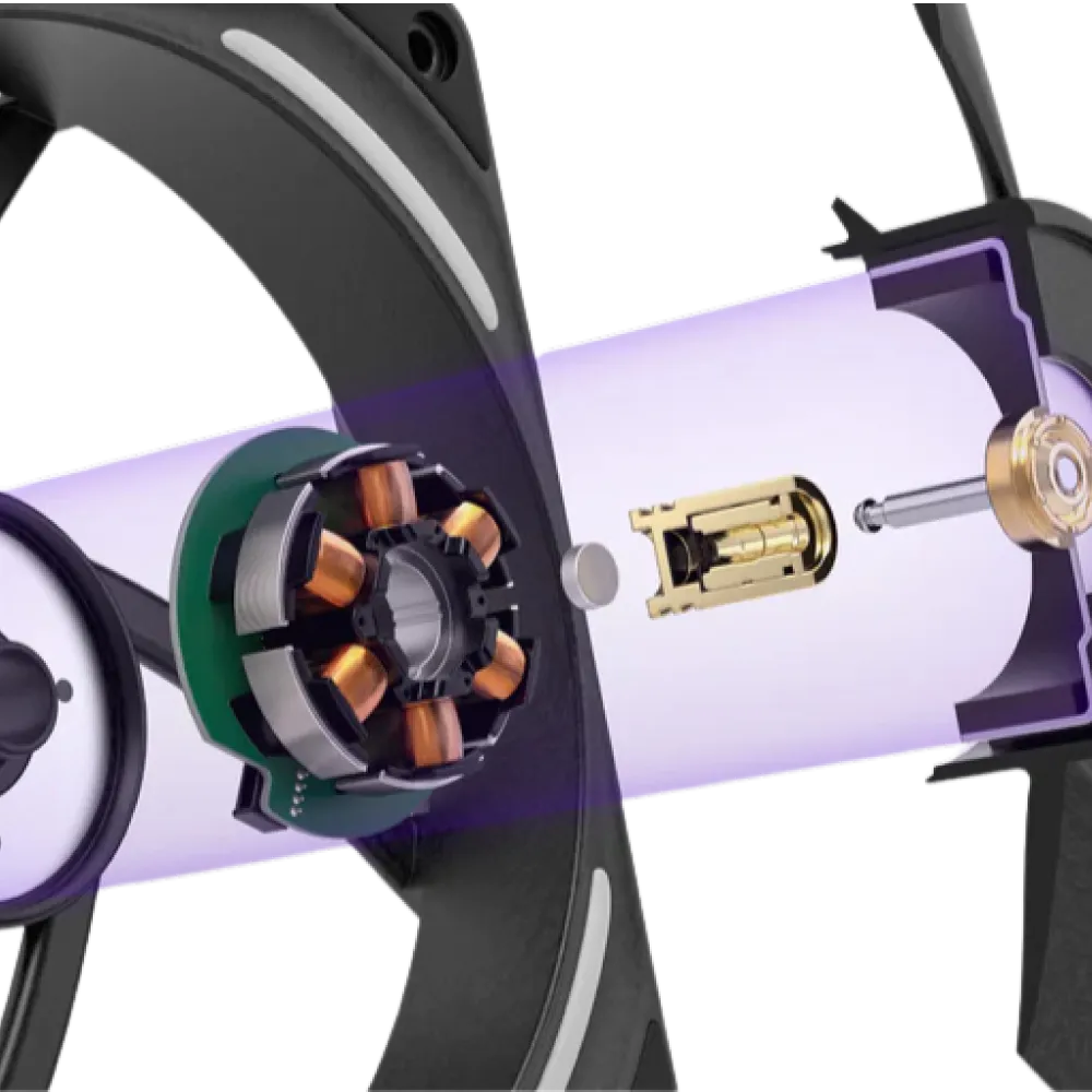 密度の高いラジエーターやフィルター、メッシュパネル越しでも空気を力強く押し出し、CPUやGPU周辺の熱を素早く排出します。